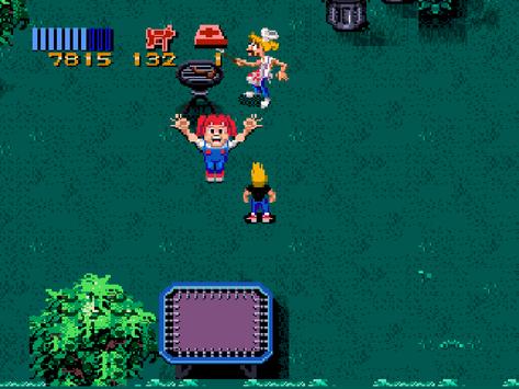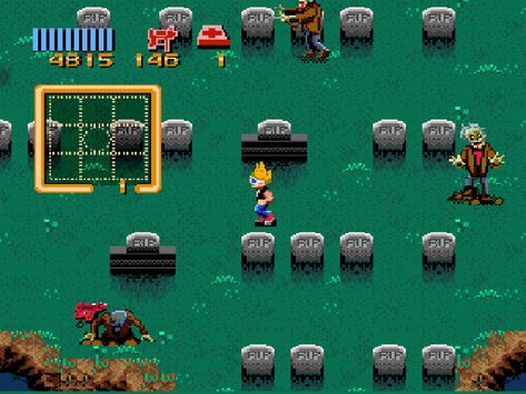 The player chooses between two characters, Zeke and Julie, or both in a two-player mode. They navigate suburban neighborhoods, shopping malls, pyramids, haunted castles and other areas, destroying a variety of horror-movie monsters, including vampires, werewolves, huge demonic babies, spiders, squidmen, evil dolls, aliens, UFOs, giant ants, blobs, giant worms, mummies, chainsaw-wielding maniacs, "pod people" (aggressive alien clones of the players), and the game's namesake, zombies.
