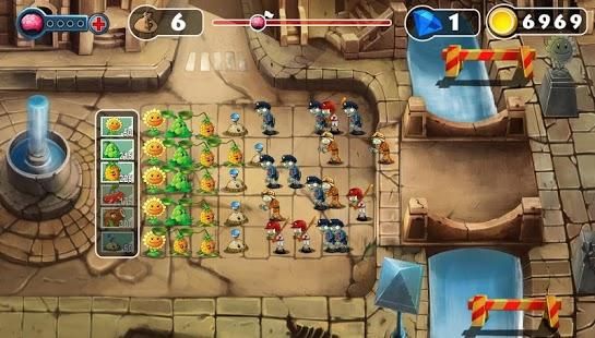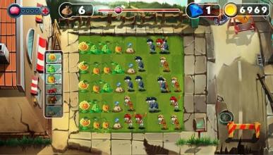 Battle between plants and zombies. You put plants against zombies that are attacking your house. Crops like pineapple, grapes, sunflowers, apples, beans, potatoes,,,