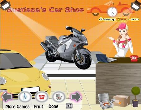 Svetlana bella ragazza vuole progettare e decorare il suo nuovo negozio di auto con lo stile e la moda, ma lei non ha idea su questo. Si può aiutarla a decorazione del negozio di auto? Accumula tue abilità di progettazione e decorazione del negozio a dare una bella mano e completare la decorazione. Rendere il negozio vivace e anche notare che quando visitano i clienti devono apprezzare la decorazione. Buon divertimento!