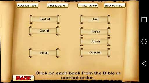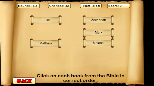 How well do you know the correct order of the books of the Bible? Let's see! Click on the books of the Bible in the correct order to score points. Have fun!
