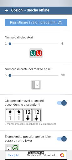 • Scegliete se giocare in modo classico con «quattro mazzi crescenti ascendenti» o con «due mazzi crescenti ascendenti e due mazzi crescenti discendenti»