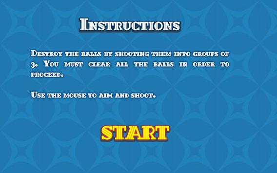 Destroy the balls by shooting them into groups of 3. You must clear all the balls in order to proceed.