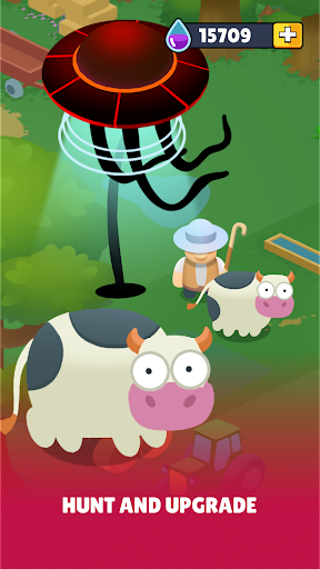 Experience the peaceful farm life from a different viewpoint. Glide over lush green landscapes and rustic farmsteads with your UFO, disrupting this countryside haven. Witness serene scenes of rural simplicity, observing farmers tending daily chores and animals roaming freely.Download "Alien Hunter" now and embark on this unique and thrilling farm-centered escapade! Capture, study, and upgrade your way through this enchanting adventure!