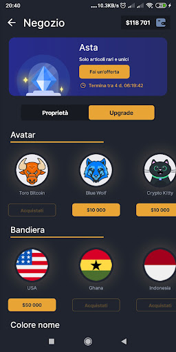 Spendi la tua ricchezza in-game per jet privati e gioielli eleganti! Partecipa alle aste o acquista sullo store in-app di Forex Royale. Compra oggetti unici e dai un tocco di lusso al tuo profilo!