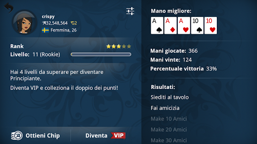 Gli stakes sono divisi tra tiny, small, medium e big e ogni giorno riceverai un bonus con ben 7,000 chips gratuite.