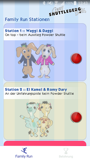 After installing the app, you can conquer the Family Run by visiting all 19 stations and receive a reward for your hard work. The app tracks your progress and shows already visited stations and which you still need to visit. After finishing the Family Run you can trade in your progress for a gift at the Shuttleberg bottom station and do the whole run over again! Also, when finished, share your victory on Facebook and download the official Shuttleberg Crazy Dolls sticker pack for Telegram.