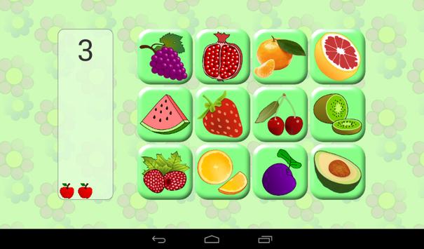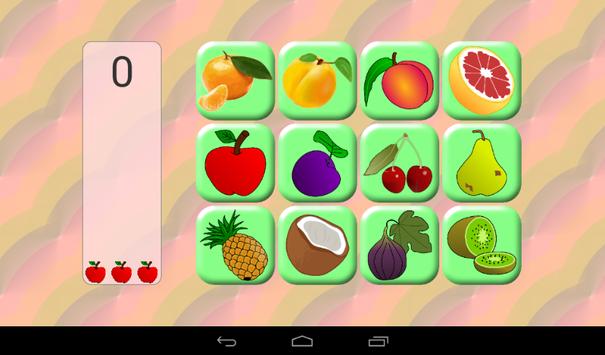 Fruit Memory and Matching Game is a great way to improve your short-term memory with the aid of lots of beautiful fruit pictures, sounds and music. There are three game types - 'Match', 'Ordered' and 'Random'.