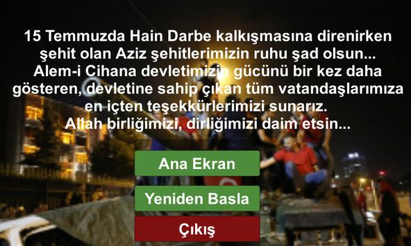 I'm grateful to martry that died when stopping the terrorist attack in 15 July and ghazi(veteran) and all my brothers that stopped the traitorous terrorist attack. Our people show the power of Turk's all the world again. Turkish people is the bravest nation. Especially, When they are fighting against the Enemy of Islam. And FETO is the Traitor terrorist organizm that try to Use The Islam for show muslim's as horrible people. But they didn't make it, and they can't, with Allah 's help. This is not good game about graphic for start, but it tell's us a story about Turkish destiny. And it's 3D version is about to finish. I'm working on it. We'll show the real muslim religion that Orders to people be ethic, honest, respectful and all the good value of good people... Thank's for the support and kindness to players that hate racism and try to search and understand others. Selamun Aleykum...