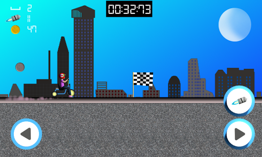 Collect as many coins as possible during the trip. With these coins you can optimize the tricycle and arm it up by buying more rockets.