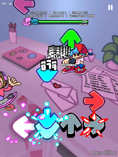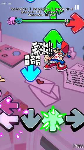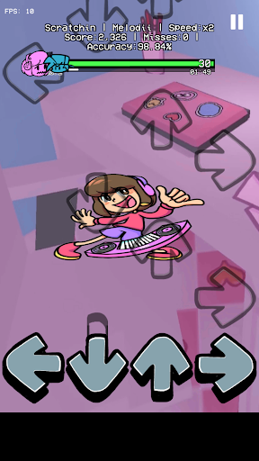 Nel frattempo andare al negozio di alimentari del venerdì sera per comprare qualcosa di funkin, fidanzato e fidanzata cadono nel portale.BF/GF entra in un posto misterioso chiamato Funkin Town dove vedono una ragazza a caso con un pianoforte funkin.Si chiama Melodii.Quindi il fidanzato chiede a Melodii di Rap Battle, ed entrambi iniziano a cantare insieme per trovare un portale per tornare a casa.Sia unito al gioco FNF per aiutarli!