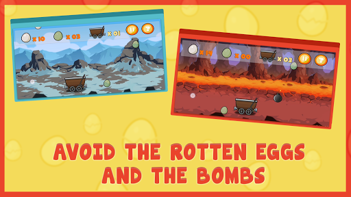 Riproduci la modalità di sopravvivenza per cercare di raccogliere tante uova che puoi prima che tre bombe cadano sul tuo carrello.O inseguire il gufo attraverso i picchi della neve per vincere e raccogliere le sue uova.