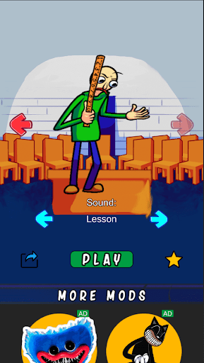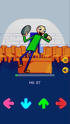 Cosa dovresti fare nel gioco FNF Baldi Mod Test? Devi, insieme al personaggio principale, ottenere il maggior numero di punti facendo clic sulle frecce sullo schermo del tuo dispositivo! Prima di iniziare il gioco, seleziona la traccia che ti piace di più e lo stato di Baldi, quindi fai clic su Gioca. Successivamente, nel FNF Baldi Test Character, sullo schermo appariranno il personaggio principale e quattro frecce, con le quali controllerai l'eroe. Non appena clicchi sulla freccia, il personaggio canterà una certa nota e farà un certo movimento. Puoi disattivare la musica di sottofondo se vuoi ascoltare solo la voce di Baldi. Per fare ciò, è necessario premere il pulsante a forma di segnale acustico sullo schermo del dispositivo.