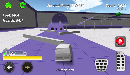 Stunt 3 Wheeler Simulator is an exciting free-roaming driving game. Go anywhere you want in the sandbox arena whilst collecting fuel and health Pick-ups to keep your car going, your fuel is always running down so find as much as you can. The Pick-ups are hidden everywhere around the arena, take on the obstacles and challenge games including Football and Bowling as you try to find them all! Earn stunt score as you drive around by performing jumps and drifts.