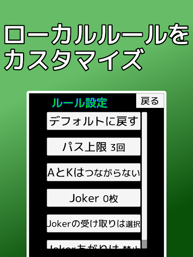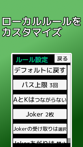 ・ Imposta le regole locali.Numero di passaggi (0-3 volte), A e K (non può essere collegato, connesso, solo un lato può essere rilasciato quando è collegato), Joker (0-2), come ricevere Joker (nessuno, scelta, sempre), JokerVinci con o senza