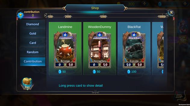 Make card groups with minion cards, skill cards and potion cards. Collect and upgrade your cards in the battle. Challenge friends in PVP field. Have fun.