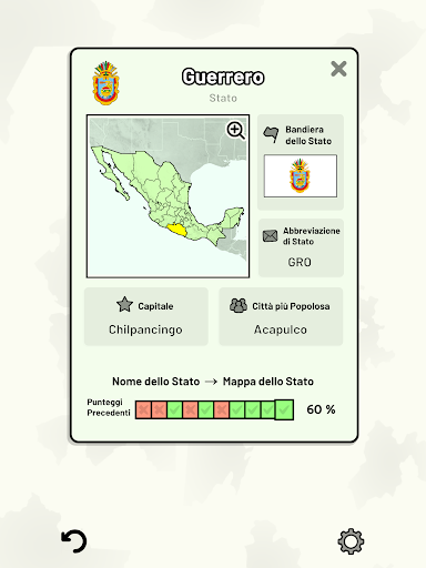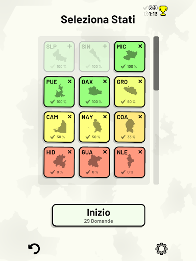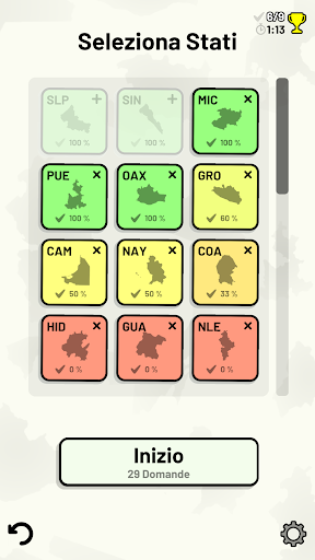I quiz personalizzabili ti permettono di scegliere quali stati e argomenti testare. I risultati precedenti per ogni stato vengono visualizzati per evidenziare i tuoi progressi in ciascun argomento.
