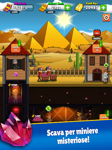 Esplora dozzine di miniere diverse ed espandi il tuo regno! Invia i tuoi minatori nel più profondo per le miniere più misteriose!