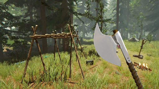 Raccogli risorse nella foresta e strumenti primordiali artigianali.
