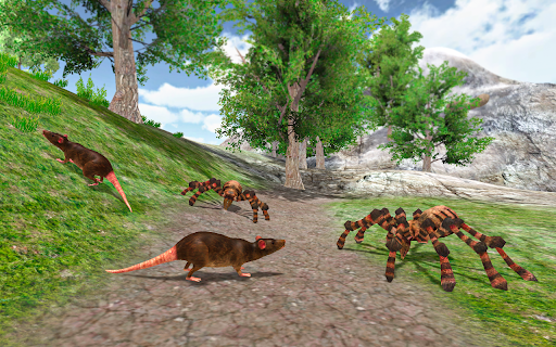 Molti tipi di serpenti, in particolare il serpente tergicristallo e il serpente Cobra, proveranno a cacciare e uccidere il tuo ragno e mangeranno il tuo ragno della regina della vedova nera.Devi rimanere avvisato nel caso in cui qualsiasi serpente o qualsiasi altra creatura pericolosa attacca il tuo ragno in questo gioco di simulazione del ragno della vita reale.