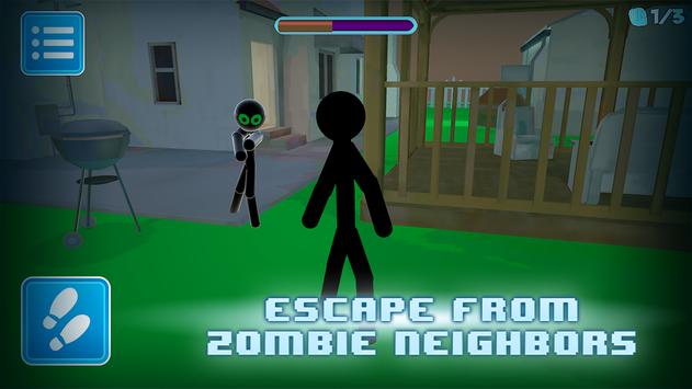 Вы в опасности, стикмен-соседа преследует вас, и он уже прибыл в ваш дом. Мы никогда не можем быть уверены в том, какие ужасы ждут вас, но мы уверены, что вам следует избегать приветов от этого стикмена-зомби, поэтому вам нужно скрываться и убегать от него, чтобы выжить. Найдите самое безопасное место в своем доме и спрячьтесь или бегите так быстро, как только сможете, собирайте добычу на своем пути, не позволяйте зомби-соседу преследовать вас, бегите и надейтесь, что его ужасы не испугают вас.