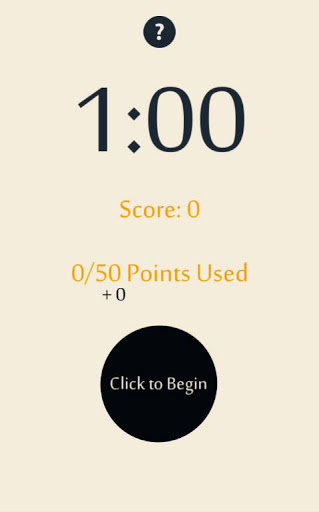 In this game, there will be a timer counting down from 1 second. Your mission is to stop the timer at as close to 0 as possible. The difference between the time you stopped on and 0 goes directly to your points. The round ends when you reach 50 points and the taps you've attempted will become your final score. Good luck!