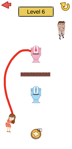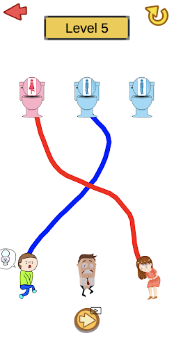 Disegna su Pee - Water Rush è un gioco di puzzle casual.Devi aiutare i personaggi a trovare la loro strada per il bagno, tracciare una linea tra i personaggi e i loro servizi igienici corrispondenti ed evitarli di sbattere l'uno nell'altro.Se si scontrano, saranno le vertigini e il gioco fallirà.