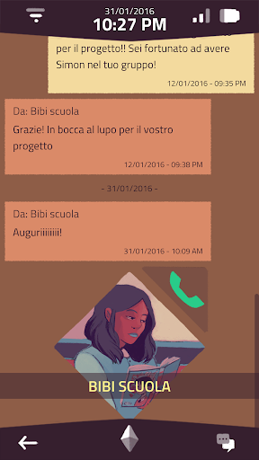 - Una narrazione condotta in modo intuitivo e immersivo attraverso l’interfaccia simulata di uno smartphone.