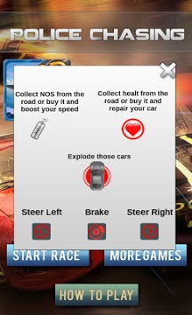 The police has hired you Lieutenant to solve the street racing thugs. You have our best car at your disposal. It has nitro and other functions that you can upgrade to after each level. Your racing skills will be put to the test, each level is gradually harder than the last. The thugs will not give up easily and your purpose is to destroy their car in order for us to arrest them. We will monitor your progress, and will inform you of each thug on the road, you will have a counter for each one and we will also inform you of the distance between you and the nearest thug car. You must chase them down as quick as possible! If you liked this racing game please try more free racing games on our profile Area Games! Also please not forget to Review and Rate this game if you liked! Thanks and Enjoy it!
