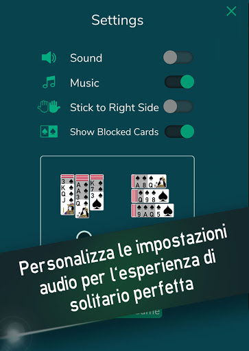 • La nuova visuale "Mazzi orizzontali" con carte più grandi per un'esperienza di solitario più comoda sui telefoni