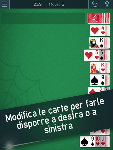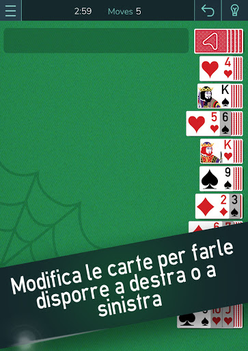 • Puoi spostare la carta del solitario in cima a un mazzo se ha un valore inferiore a quella su cui viene posta