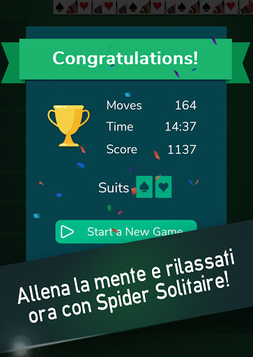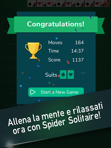 Spider Solitaire Classic Free ti permette di mettere alla prova il tuo pensiero logico pianificando mosse con largo anticipo. Un grande allenamento per la tua mente.