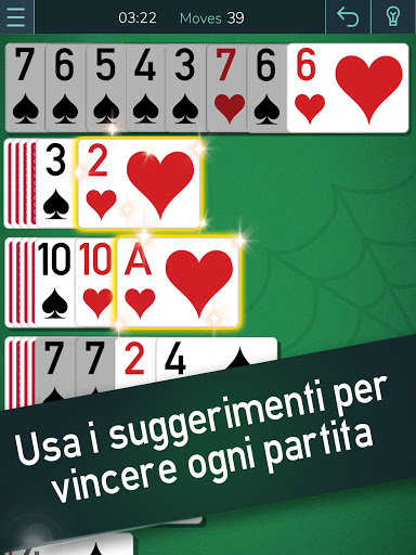 Prova questi suggerimenti facendo una partita al nostro solitario gratuito. Se hai bisogno di un aiuto in più, usa il pulsante "Suggerimenti", ti darà altri utili consigli per vincere la partita!