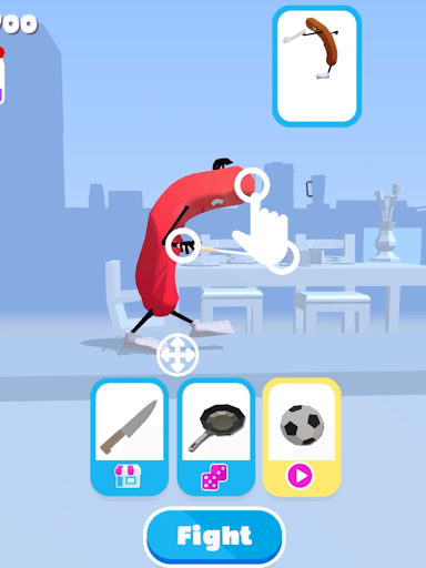 Le salsicce sono pronte a combattere.Scegli la lotta all'angolo migliore con le armi, tra cui coltello, forchetta e tutte le armi divertenti.