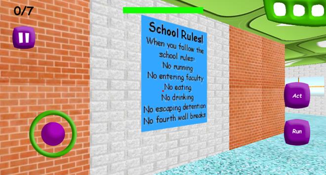 You need collect all 7 of the notebooks and escape the school, all while avoiding Baldi. Scary teacher Baldi has many friends in the school that will slow down your progress and put you at risk of being caught, so learn how each character works and how you can avoid their attention
