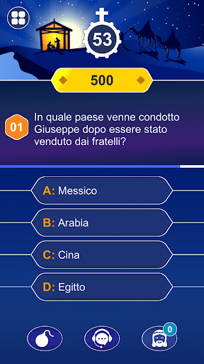 Se ti imbatti in una domanda indovina Bibbia difficile, puoi utilizzare l'aiuto 50:50, consultare il pubblico o chiamare una persona cara. Specialmente gli esperti della Bibbia: Geoguessr, Discepolato, Maria, God, Dio, san Giuseppe e Gesù sono sempre qui per assistervi nella vostra vittoria.