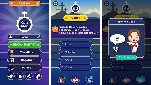 3000 Quiz Cultura Generale Biblici che coprono sia l'Antico che il Nuovo Testamento, questo gioco ti aiuterà a mostrare la tua ricca conoscenza della Bibbia.