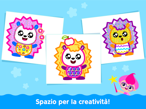 👉 Ampia varietà di strumenti: pennelli, adesivi, motivi e texture in questi giochi per bambini gratis;
