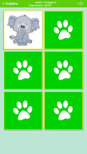 Capovolgere le carte per vedere le coppie di immagini. Ci sono quattro modalità di gioco (facile, medio, difficile, molto difficile ed extra).