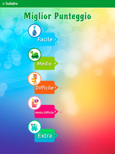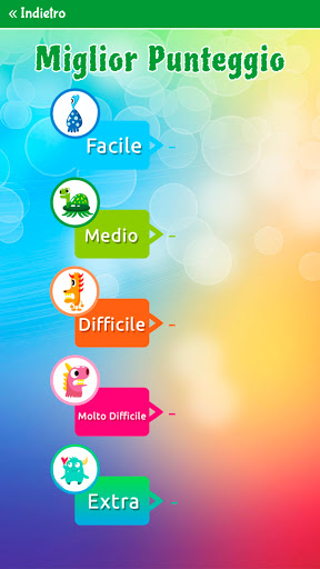 - 5 livelli (facile, medio, difficile, molto difficile ed extra).