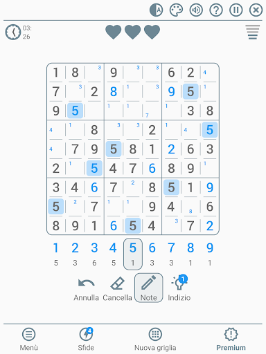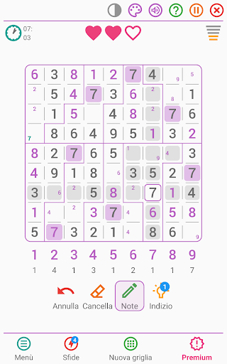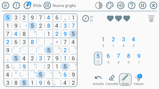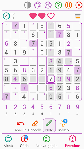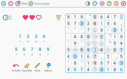 Sudoku classico in italiano si distingue dagli altri giochi di puzzle grazie alle sue molte qualità e alle sue numerose personalizzazioni possibili, che lo rendono uno dei migliori giochi di sudoku classico!