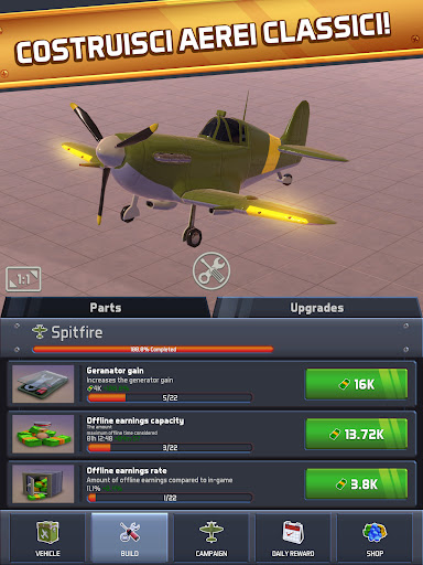 COSTRUISCI incredibili aerei da guerra partendo da zero, assemblando macchine volanti mozzafiato pezzo per pezzo in una soddisfacente esperienza full clicker di costruzione con la storia degli idle air!