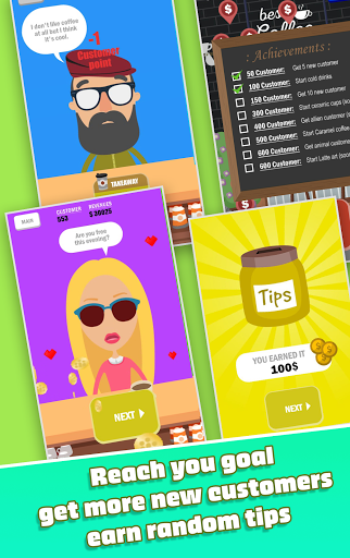 Impara Real Coffee Ricette quando giochi.Inizia la tua caffetteria e fai crescere la tua strada.Chicco di caffè macinato nella macinatura.Disegno Latte Art, Take Away Coffees, scrivere nomi dei clienti, lavare i tuoi piatti, nuovi costumi, animali domestici.Guadagna nuove competenze e nuovi clienti sbloccando il successo.