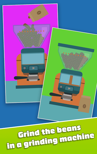 Cappuccino, Macchiato, Latte, Americano, Bianco piatto, Espresso.Puoi imparare ricette di caffè reali durante il gioco.