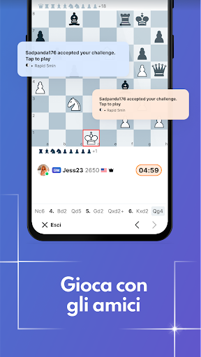 - Invia e ricevi sfide da altri utenti di chess24