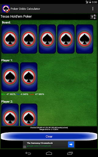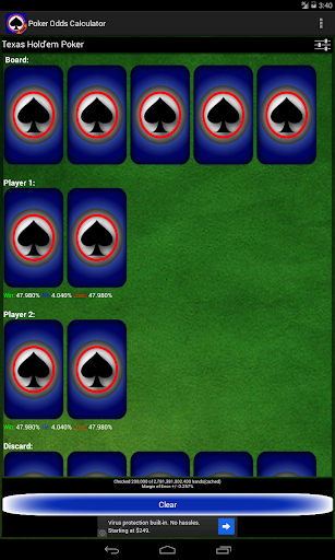 Il calcolatore di probabilità di poker è un texas gratuito in Texas Hold ' EM e Omaha Poker Odds / Equity Calculator.