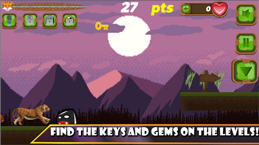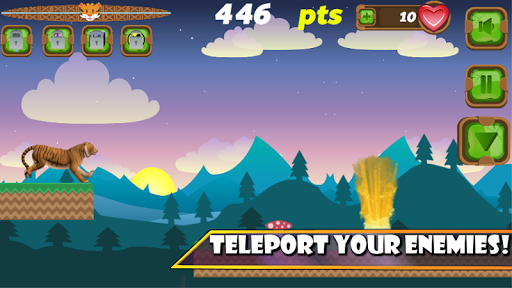 Play as a tiger through different dimensions! Run and jump through different scenarios, face many types of enemies and 10 very strong bosses! Touch the screen to jump and touch your enemies to teleport them away!