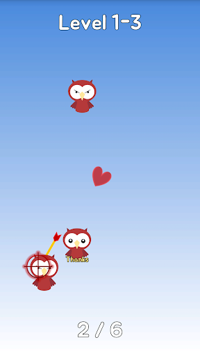 gioco di tiro a freccia si compone di diversi livelli. se il numero di calmarsi di un uccello arrabbiato corrisponde all'obiettivo di ogni livello, puoi passare al livello successivo. ad un certo momento, puoi vedere un grosso uccello arrabbiato. i piccoli uccelli si sentono meglio quando colpiscono solo una volta, ma un grosso uccello arrabbiato si calma quando molte frecce d'amore vengono colpite da un grosso uccello arrabbiato. prova a scoccare la freccia dell'amore finché il grande uccello non si sente meglio.