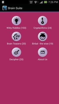 Brain Suite is a collection of brain teasers, riddles, cryptarithms and much more. This is a complete suite for keeping your brain engaged, and tease it, eventually training it to be sharper enabling out-of-the-box thinking.
