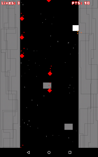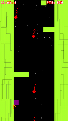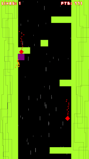 Tap the screen to move your sliding cube from one side to another. Collect red bonuses and avoid gray obstacles - you only have 3 lives. Collect enough score to unlock new visual appearances and overcome your own records by reaching new heights!