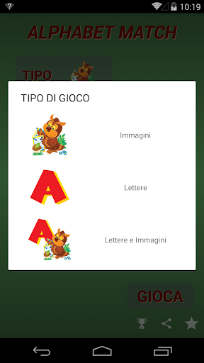 - 3 paia modalità di corrispondenza (lettere, lettera-a-immagine / parola, e le immagini semplicemente simpatici)